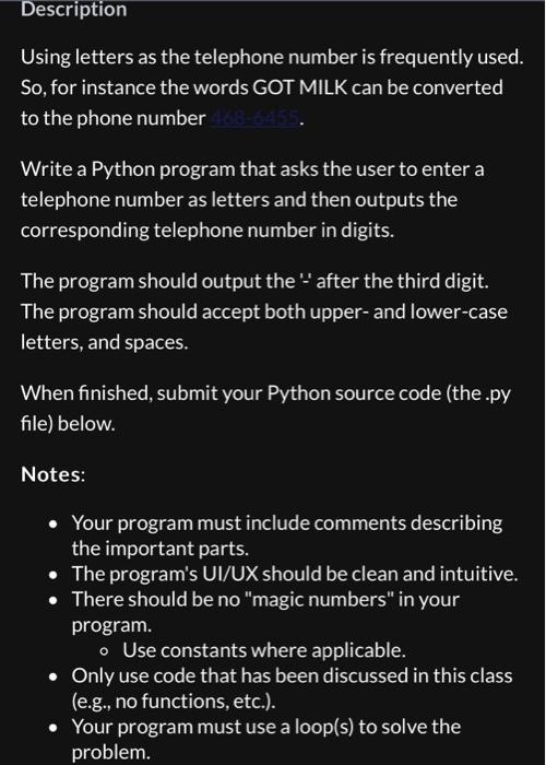 Solved Description Using Letters As The Telephone Number Is Chegg Com